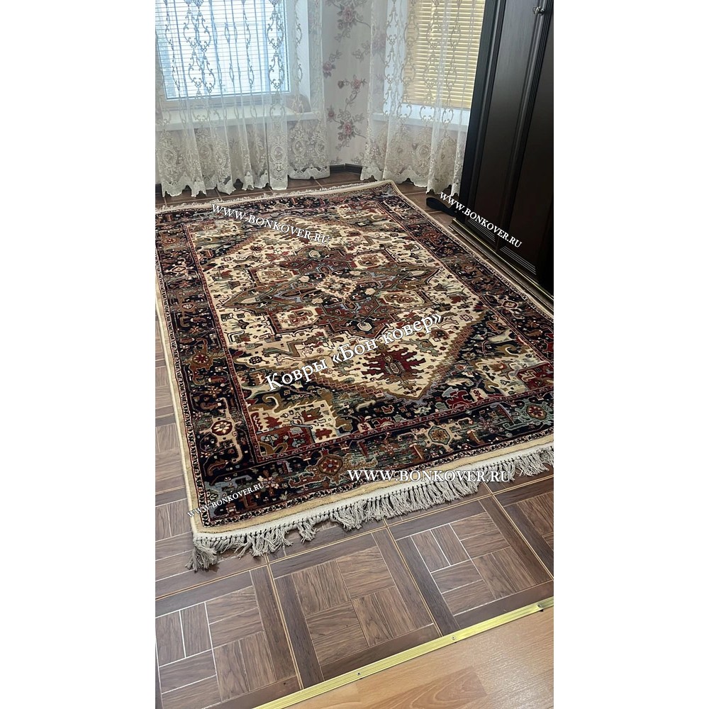 Долго выбирала, остановилась на данной модели. Ковер понравился, очень красивый праздничный, нежной расцветки сливочно кремовой. Ковёр средний плотности, к этому я была готова, т. к. вес ковра 9 кг, ковры аналогичных размеров более плотной набивки весят 12 кг. Слегка хамелионит, в дневное время цвет..